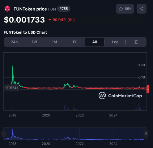 To add insult to injury, FUN token has also lost 90% of its value and trades at $0.001733 per token, so whatever Hail Mary this was is clearly dead and buried.